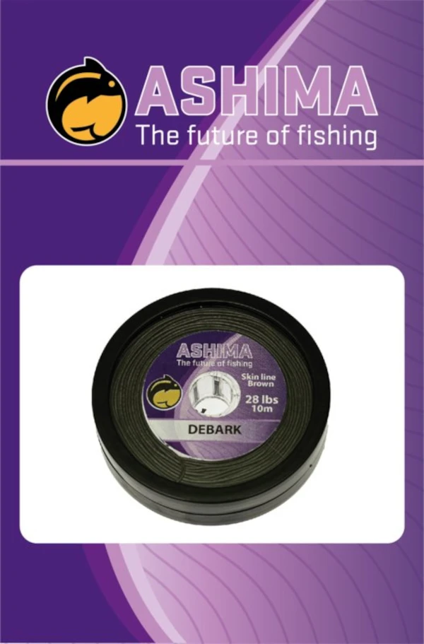De Ashima Debark PVC Skin Line is een zacht, soepel en zinkend onderlijnmateiraal dat gecoat is met PVC. Hierdoor zinkt je onderlijn snel naar de bodem en blijft daar mooi plat liggen. Deze PVC lijn is verkrijgbaar in 18lb, 28lb en 38lb in de kleur Camo Brown met 10 meter op een spoel. Het volgt mooi de contouren van de bodem, laat zich goed gebruiken voor een grote variatie aan moderne onderlijnen en laat zich tegelijk makkelijk verwerken. Het onderlijnmateriaal dat je tijdens je obstakelvisserij heel goed kan inzetten!